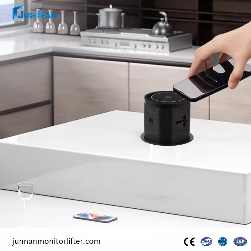 Guangzhou Junnan - большой скрытый утопленный табличный табличный табличный стол, перевернете розетку с заводом из производства портов USB из Китая. Традиционные офисные настольные розетки часто неловко помещаются на рабочем столе, а различные вилки и провода грязные, что не только влияет на внешний вид, но и легко вызывает риски безопасности. Скрытый встроенный офисный настольный розетка является идеальным решением этих проблем. Он может скрыть розетку с питанием внутри рабочего стола, выскочить только при необходимости и интегрироваться с настольным компьютером, когда не используется, чтобы сохранить рабочий стол в чистоте и красивой. В то же время эта конструкция также может избежать запутывания проводов, снизить риски безопасности и повысить безопасность офисных помещений.