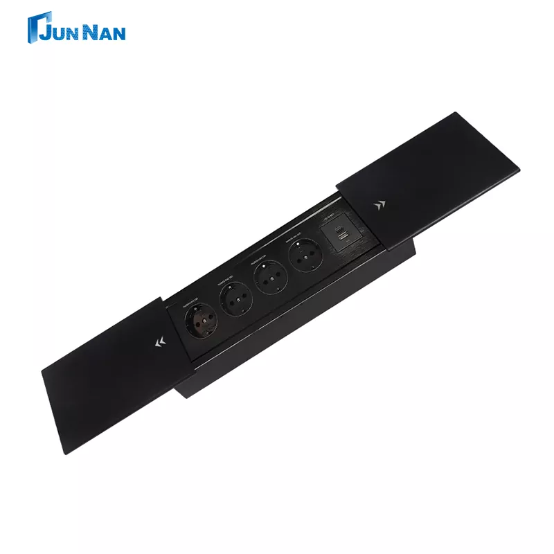 Универсальная розетка JUNNAN Schuko с электроприводом, выдвижная розетка для кухонного стола, функция откидной панели одним касанием, а розетка скрывает рабочий стол, не занимая места. Наши усовершенствованные выдвижные настольные розетки представляют собой новейший тип розеток, просты в обслуживании, их можно приобрести оптом или настроить для клиентов. Кроме того, наши устройства Junnan имеют множество сертификатов, таких как CCC, сертификация CE, ROHS, сертификация ISO и т. д. Наша продукция безопасна и качественна, имеет экспортную квалификацию, прямую продажу с фабрики, выгодную цену, собственную фабрику и работает уже много лет.